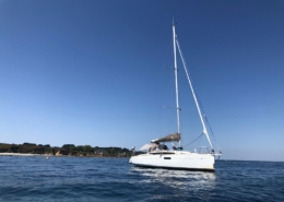 Stergann est un croiseur habitable de 10 m, avec une quille relevable qui permet d’accéder à des mouillages proches des côtes. Il est équipée pour tout type de croisière et peut accueillir 6 équipiers avec ses 3 cabines doubles. Il est amarré au port de La Turballe, en Loire-Atlantique, à une heure de voiture de Nantes.